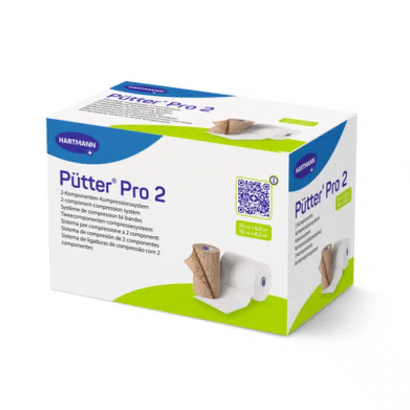 Η αντιμετώπιση του φλεβικού έλκους (VLU) και των χρόνιων οιδημάτων απαιτεί σταθερή και ελεγχόμενη πίεση. Το Pütter Pro 2, δημιουργία της παγκοσμίου φήμης εταιρείας Hartmann, αποτελεί ένα ολοκληρωμένο σύστημα δύο στρωμάτων που προσφέρει υψηλή πίεση εργασίας και χαμηλή πίεση ανάπαυσης.